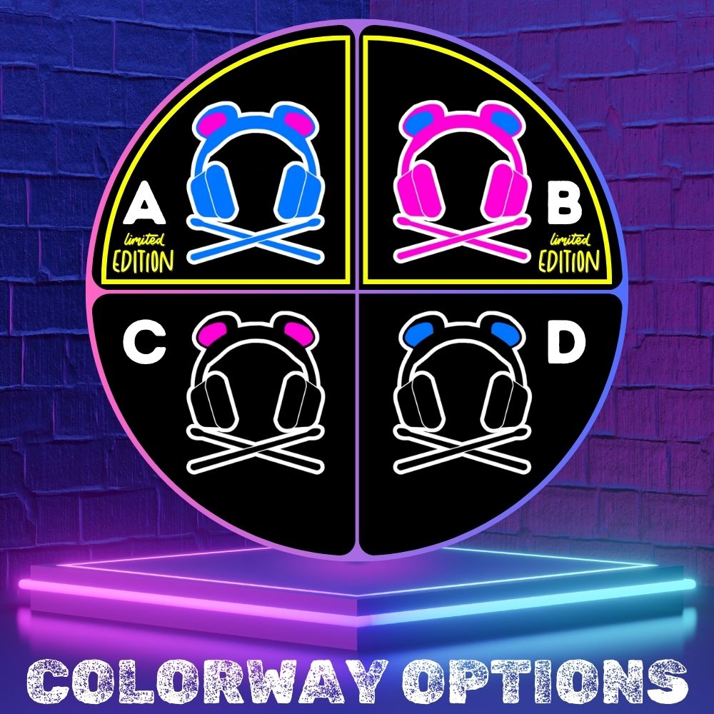 A (blue headphones with pink ears)